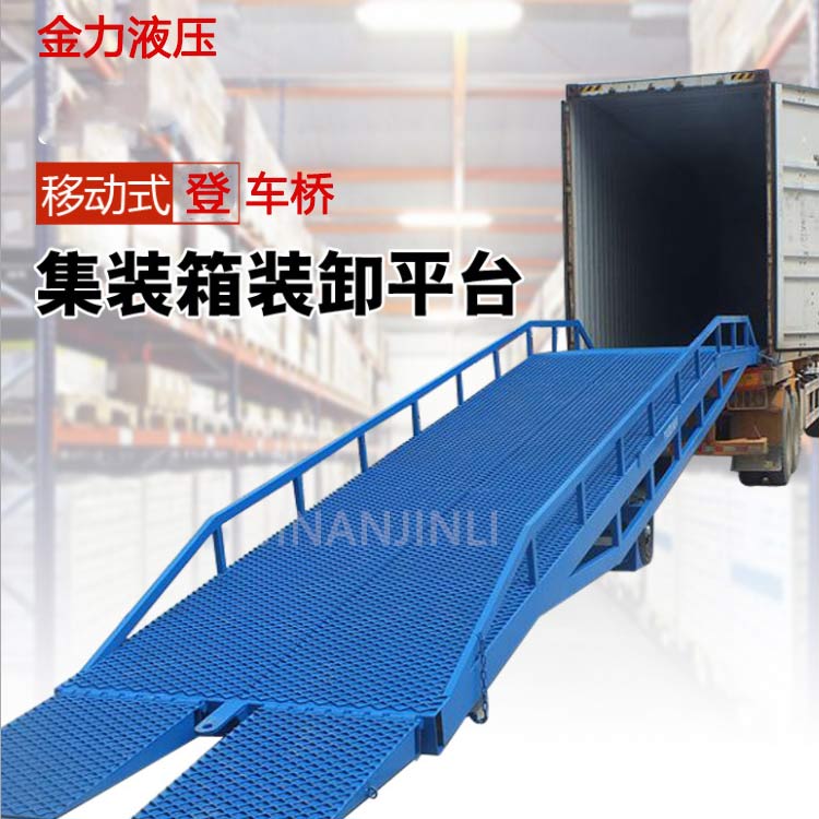 移動(dòng)式登車橋廣泛用于無裝卸設(shè)備的貨臺(tái)及流動(dòng)裝卸場所,是與叉車配合使用的貨物裝卸輔助設(shè)備。借助移動(dòng)式登車橋,叉車能直接駛?cè)肫嚰b箱內(nèi)部進(jìn)行批量裝卸作業(yè)。只需單人操作,不需動(dòng)力電源,即可實(shí)現(xiàn)貨物的安全快速裝卸